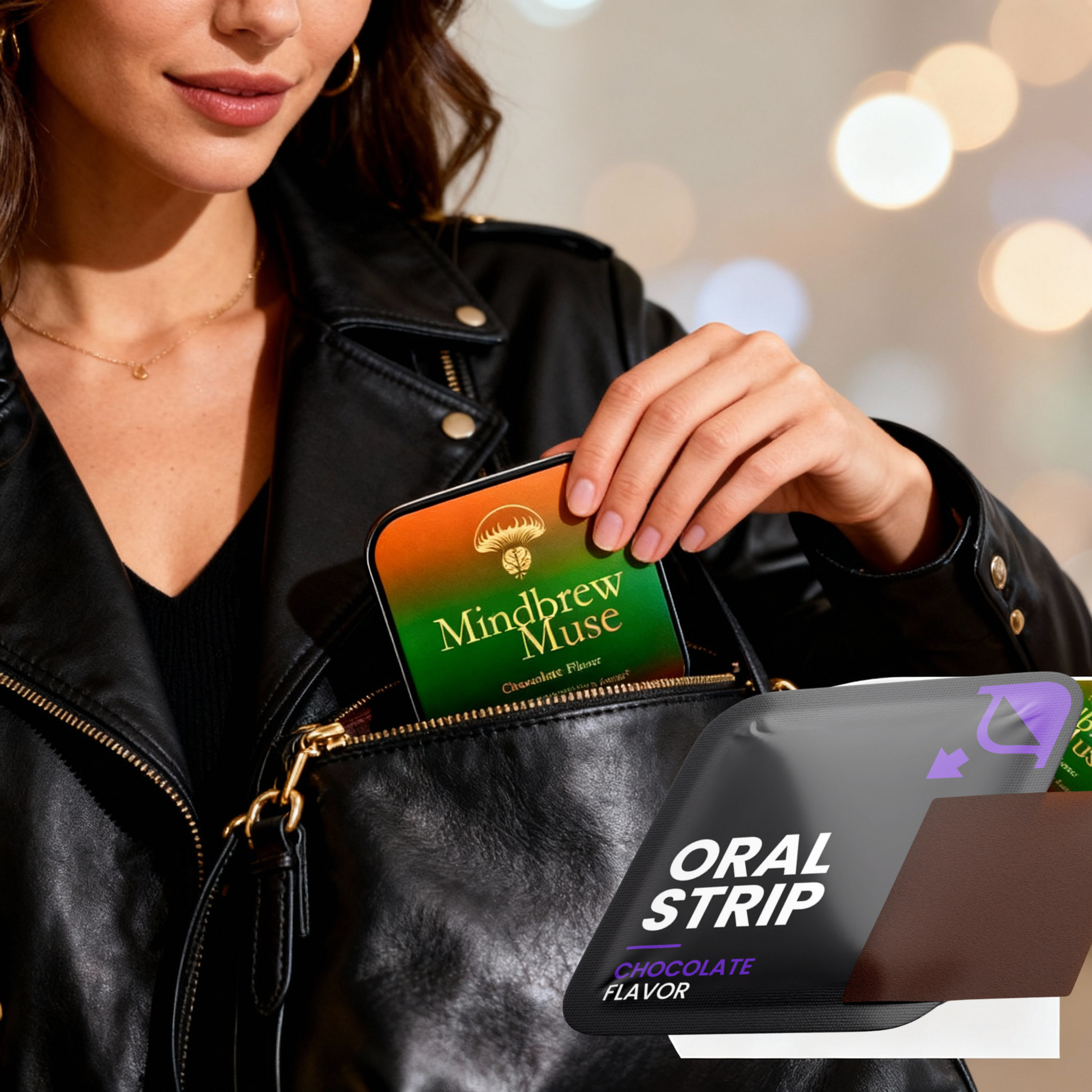 Each smooth, chocolate-flavored strip melts on your tongue, delivering the same mushroom-powered focus you love — now in an instant. Inside each dissolvable square, you’ll find a refined version of the Mindbrew formula built for busy, high-performing minds.