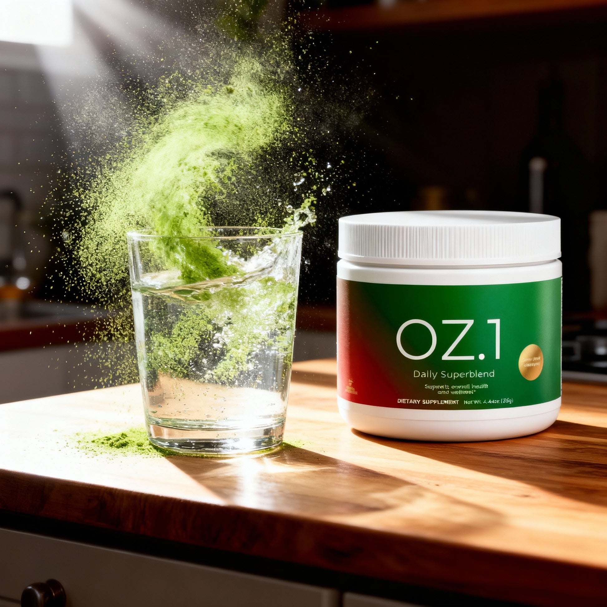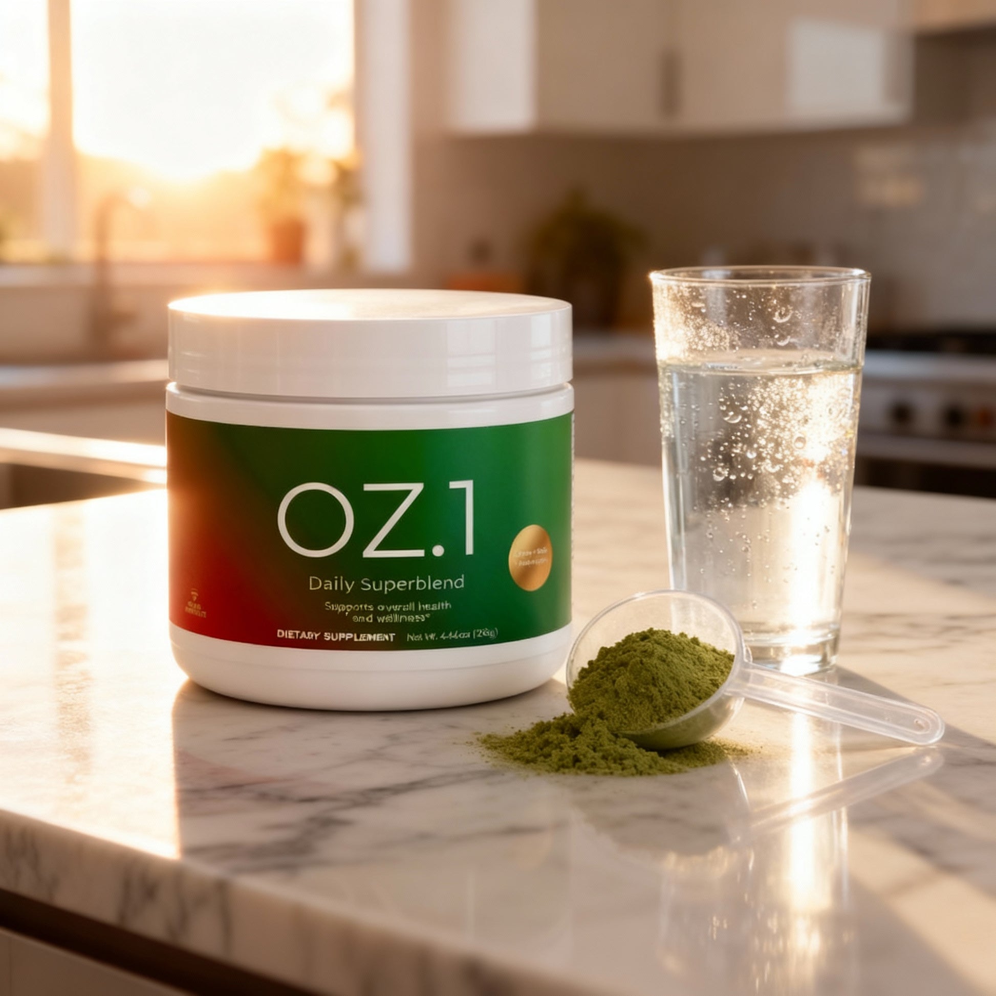 OZ.1 isn’t just a greens powder. It’s a complete daily superblend — greens + reds + adaptogens + real superfoods — crafted to support energy, digestion, recovery, and overall wellness in one scoop.
