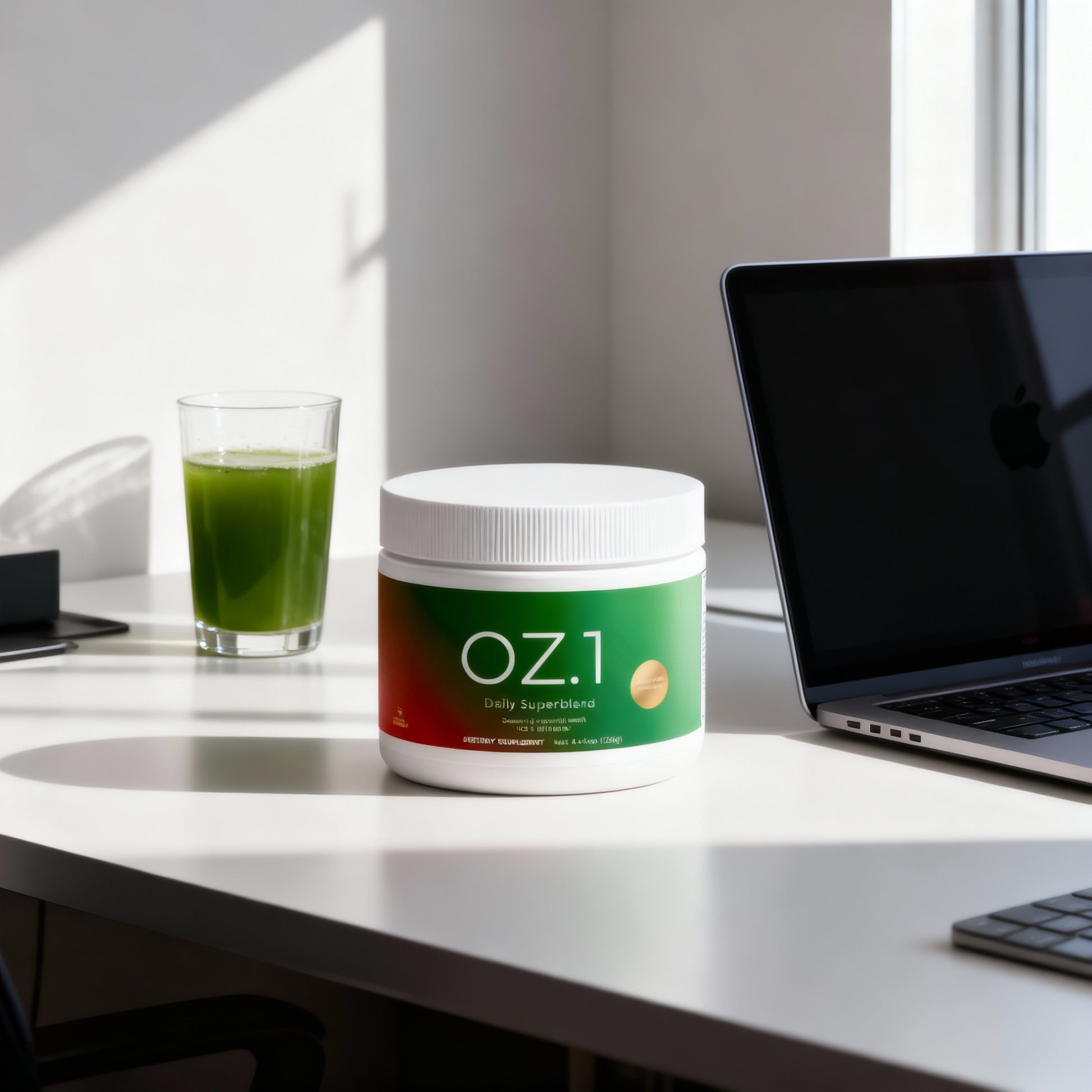 With ingredients like barley grass, spirulina, hibiscus, beet root, green tea, turmeric, probiotics, and more, OZ.1 gives your body what it’s been missing — without the price tag of the big brands.