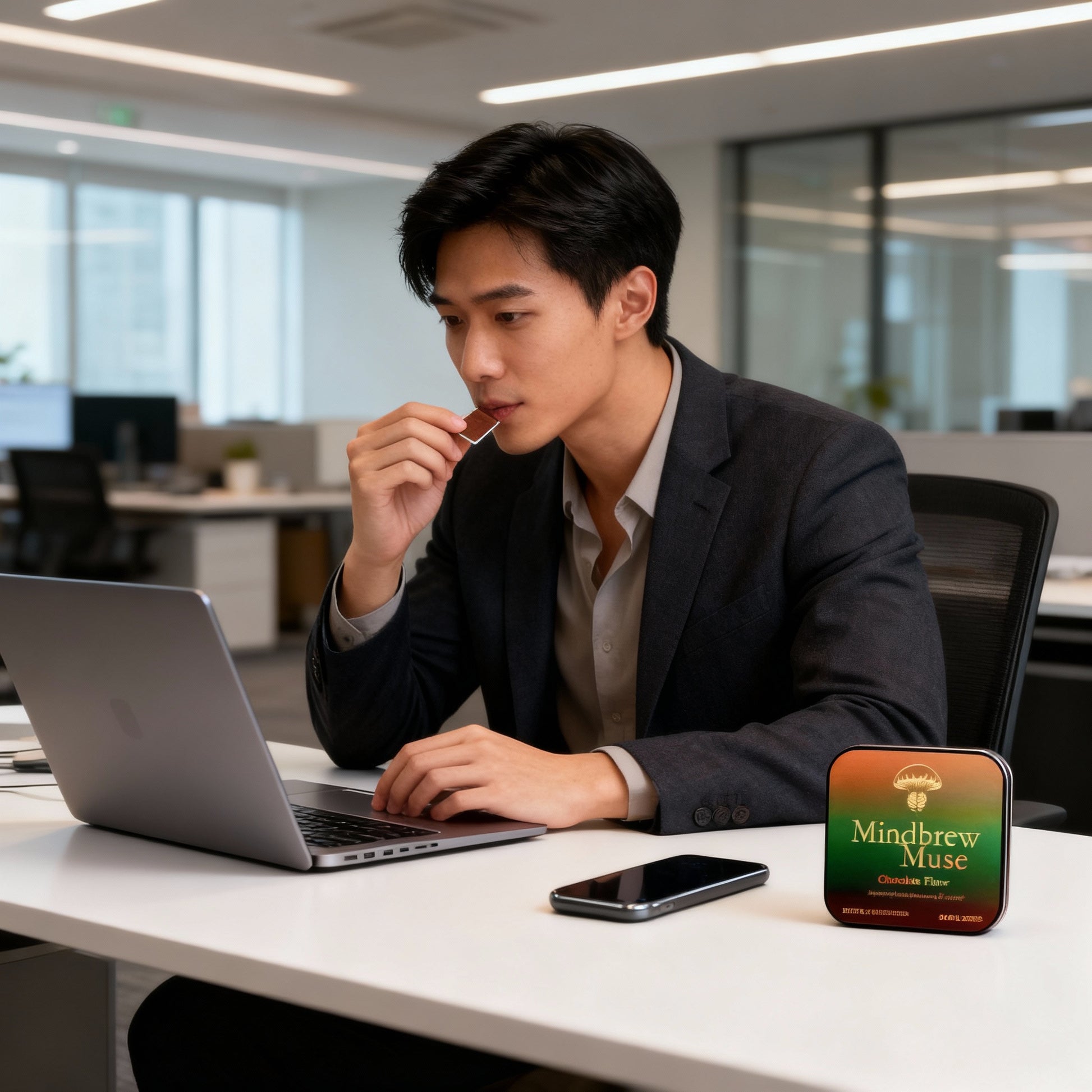 Each smooth, chocolate-flavored strip melts on your tongue, delivering the same mushroom-powered focus you love — now in an instant. Inside each dissolvable square, you’ll find a refined version of the Mindbrew formula built for busy, high-performing minds.